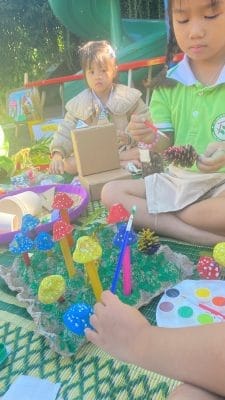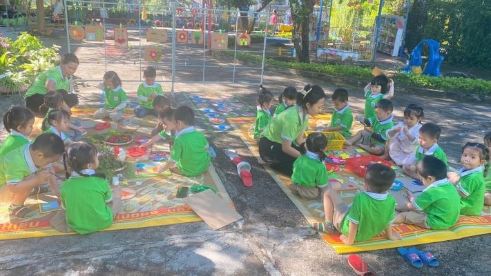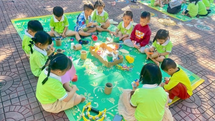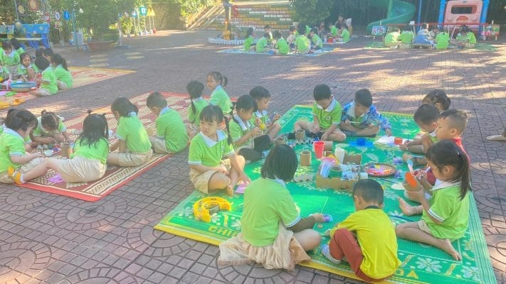 Sáng ngày 11/11/2024 Trường Mầm non Bình Minh tổ chức cho trẻ các khối mẫu giáo thực hiện trải nghiệm, tao ra sản phẩm từ các nguyên, vật liệu khác nhau. Thông qua hoạt động giúp cho trẻ tiếp xúc, làm quen với cuộc sống xung quanh nhằm tạo ra các “tác phẩm” bằng cách nhìn, cách nghĩ, cách cảm nhận của bản thân trẻ. “Tác phẩm” của trẻ sẽ không “chỉnh chu”, không giống thật, màu sắc có thể tự do theo ý thích có thể không như thực ngoài đời nhưng lại ngộ nghĩnh, đôi khi lại rất “động”, có tính biểu cảm. Qua quan sát, tìm hiểu các sự vật, hiện tượng giúp trẻ nhận ra các đặc điểm thẩm mĩ (hình dáng, màu sắc, cấu trúc, tỉ lệ, sự sắp xếp không gian…) nhận ra được những nét độc đáo, tạo nên sức hấp dẫn của đối tượng, .giúp cho trẻ phát triển óc sáng tạo, thẩm mỹ, rèn luyện vận động tinh, giáo dục trẻ đoàn kết, giúp đỡ nhau trọng mọi hoạt động.