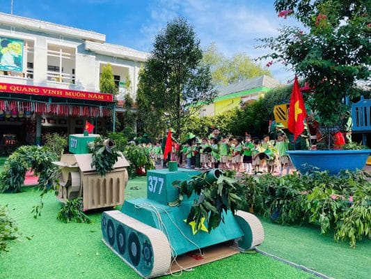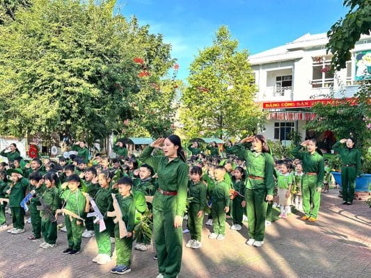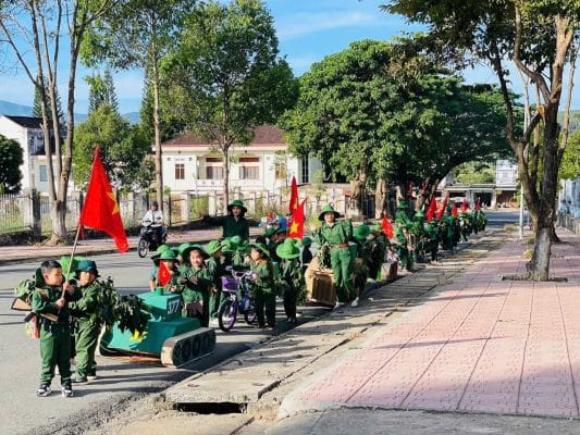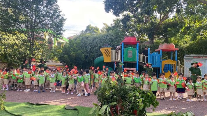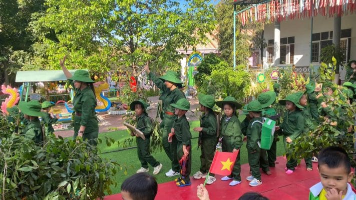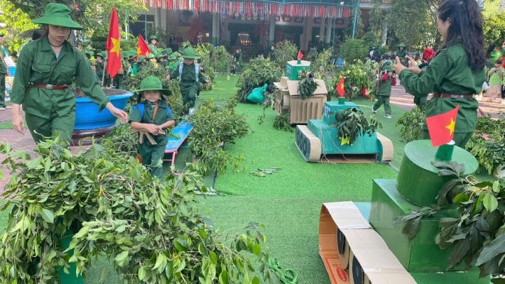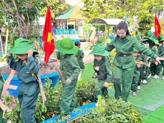 Nhân kỷ niệm 80 năm ngày thành lập Quân đội nhân dân Việt Nam (22/12/1944- 22/12/2024), Trường MN Bình Minh tổ chức các hoạt động trải nghiệm “Bé tập làm cô, chú bộ đội”. Trẻ chào cờ, hát Quốc ca; đi đều; hành quân; Trải nghiệm thao trường (băng qua rừng, vượt qua cầu, bò, trườn, chui qua hầm, tải đạn, tải lương thực về kho). Thông qua đó giáo dục trẻ, những thế hệ mầm non tương lai của Đất nước về tinh thần đoàn kết, biết yêu hoà bình, biết bảo vệ độc lập tự do, biết gìn giữ truyền thống yêu nước. Và hơn bao giờ hết, phải luôn luôn học tập, rèn luyện sức khoẻ, trau dồi tri thức để xây dựng một xã hội văn minh, phát triển, xứng đáng với những hy sinh to lớn của Quân đội Nhân dân Việt Nam.