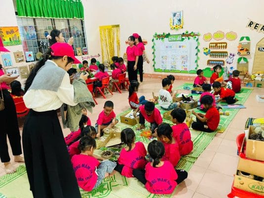 Sáng ngày 11/12/2024 Trường Mầm non Bình Minh và Trường MN Đăk Trăm phối, kết hợp cho trẻ 5 tuổi và giáo viên giao lưu, trải nghiệm học tập trong công tác chăm sóc giáo dục trẻ. Thông qua hoạt động giúp cho trẻ phát triển kỹ năng giao tiếp, tình cảm xã hội, tinh thần đoàn kết, yêu thương và chia sẻ, trẻ được cùng nhau tham gia các trò chơi, các hoạt động tập thể, được cùng nhau ăn cơm trưa, tương tác cùng nhau, tạo không khí vui tươi, ấm cúng. Các cô giáo cùng nhau trao đổi về công tác chuyên môn, thiết kế môi trường, ứng dụng, khai thác môi trường vào công tác chăm sóc, giáo dục trẻ, trao đổi kinh nghiệm về việc làm đồ dùng, đồ chơi phục vụ công tác giáo dục. Xây dựng mối đoàn kết đồng nghiệp, hỗ trợ nhau cùng phát triển, nâng cao năng lực chuyên môn giúp nhau cùng tiến bộ.