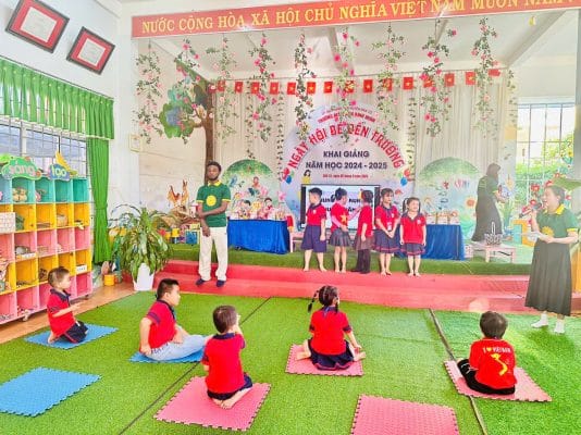 Ngày 17/12/2024 Trường MN Bình Minh phối hợp cùng Trung tâm Tiếng Anh Thiện nhân Sunflower tổ chức “Rung chuông vàng” cho 41 bạn nhỏ được chọn từ vòng sơ khảo. Tại đây các con đã được tham gia các trò chơi nhằm để luyện về nghe, nói, hiểu tiếng Anh ( một số từ vựng phù hợp với mỗi lứ tuổi), thông qua hoạt động rèn luyện cho trẻ kỹ năng đơn giản về tiếng Anh đọc theo được thành tiếng một số từ thông dụng khi xem tranh, minh họa, chỉ người, đồ vật, sự vật, hiện tượng, hành động, biểu tượng, kí hiệu rất đơn giản, phù hợp với lứa tuổi, nghe hiểu và thực hiện được một số yêu cầu ngắn, đơn giản, nghe hiểu được một số từ, cụm từ và câu quen thuộc. kích thích trẻ có hứng thú với tiếng Anh và tích cực tham gia các hoạt động làm quen với tiếng Anh, Mạnh dạn và tự tin trong giao tiếp. Tạo điều kiện thuận lợi để trẻ có cơ hội được tiếp cận, làm quen với tiếng Anh, giúp trẻ có niềm vui, hứng thú đối với việc học ngoại ngữ; hướng tới hình thành và phát triển năng lực giao tiếp bằng tiếng Anh theo nhu cầu và khả năng của trẻ; tạo tiền đề cho việc học tiếng Anh của trẻ ở các bậc tiểu học.