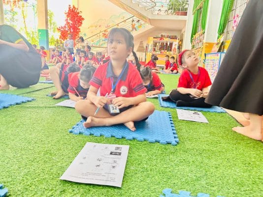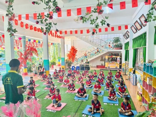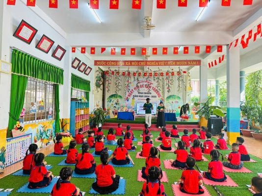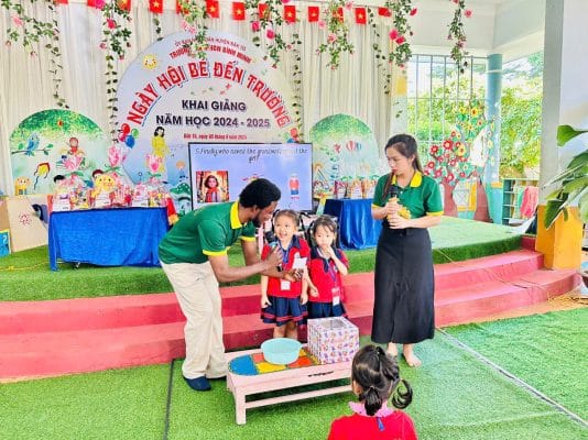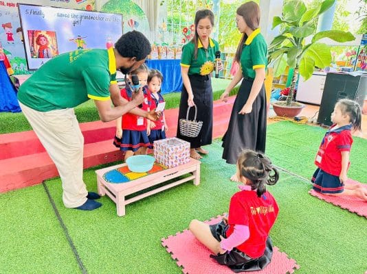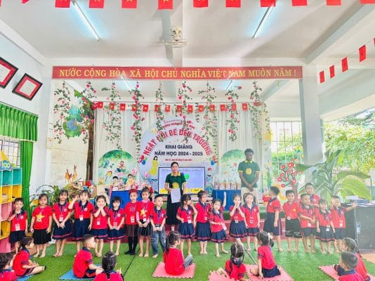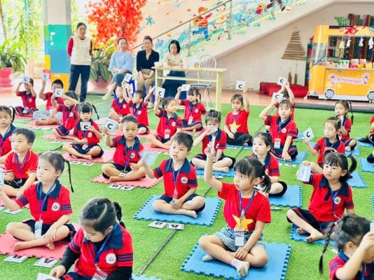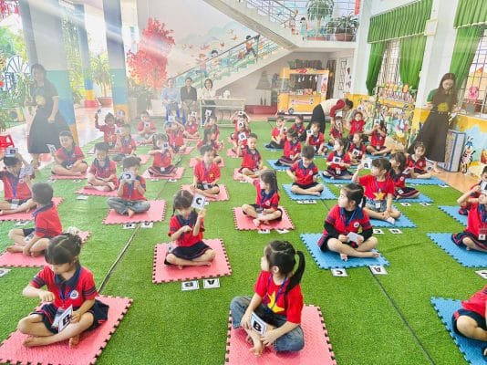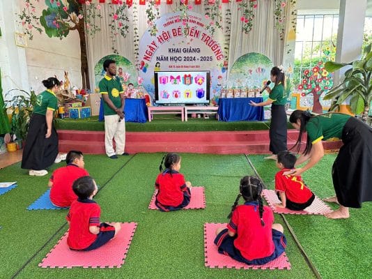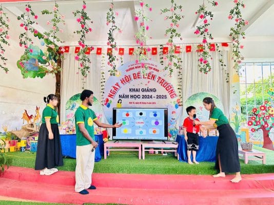 Ngày 17/12/2024 Trường MN Bình Minh phối hợp cùng Trung tâm Tiếng Anh Thiện nhân Sunflower tổ chức “Rung chuông vàng” cho 41 bạn nhỏ được chọn từ vòng sơ khảo. Tại đây các con đã được tham gia các trò chơi nhằm để luyện về nghe, nói, hiểu tiếng Anh ( một số từ vựng phù hợp với mỗi lứ tuổi), thông qua hoạt động rèn luyện cho trẻ kỹ năng đơn giản về tiếng Anh đọc theo được thành tiếng một số từ thông dụng khi xem tranh, minh họa, chỉ người, đồ vật, sự vật, hiện tượng, hành động, biểu tượng, kí hiệu rất đơn giản, phù hợp với lứa tuổi, nghe hiểu và thực hiện được một số yêu cầu ngắn, đơn giản, nghe hiểu được một số từ, cụm từ và câu quen thuộc. kích thích trẻ có hứng thú với tiếng Anh và tích cực tham gia các hoạt động làm quen với tiếng Anh, Mạnh dạn và tự tin trong giao tiếp. Tạo điều kiện thuận lợi để trẻ có cơ hội được tiếp cận, làm quen với tiếng Anh, giúp trẻ có niềm vui, hứng thú đối với việc học ngoại ngữ; hướng tới hình thành và phát triển năng lực giao tiếp bằng tiếng Anh theo nhu cầu và khả năng của trẻ; tạo tiền đề cho việc học tiếng Anh của trẻ ở các bậc tiểu học.