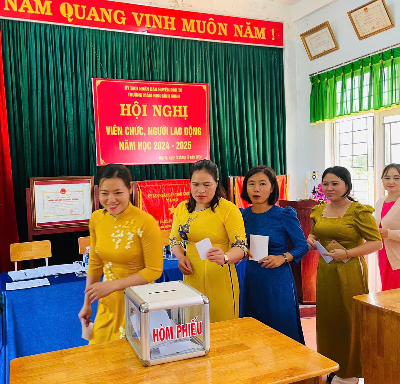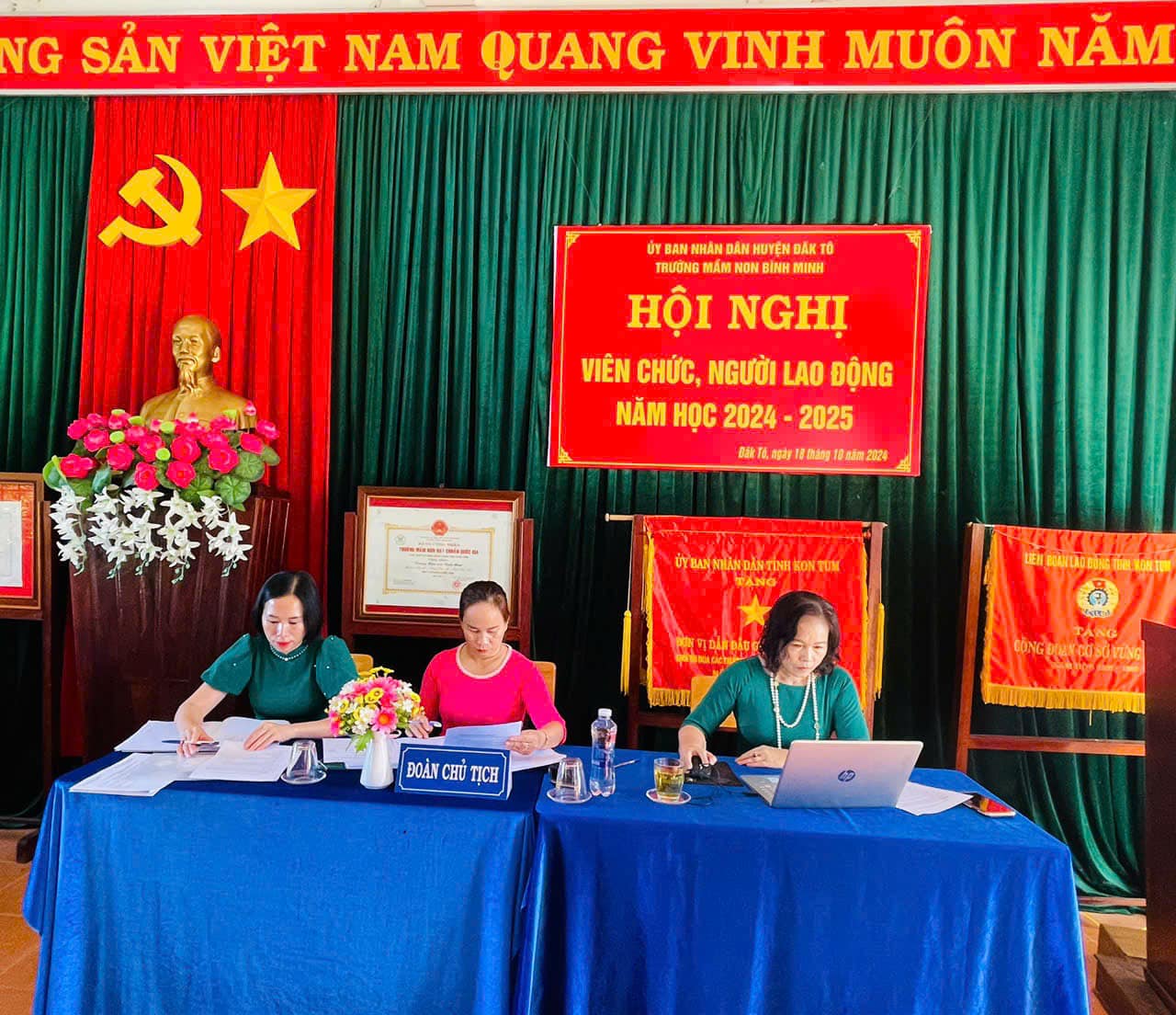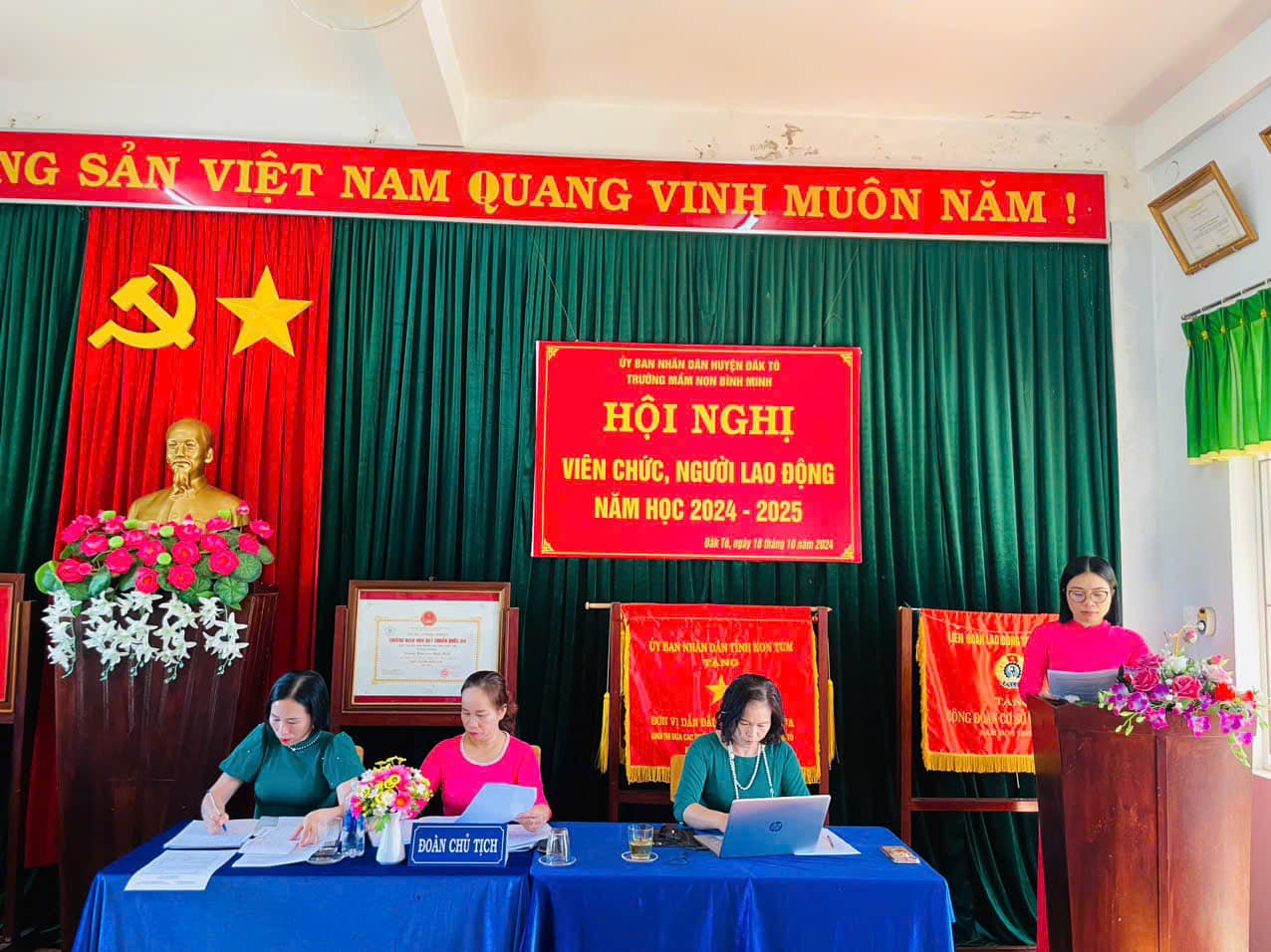 Hôm nay ngày 18/10/2024, trường Mầm non Bình Minh tổ chức hội nghị Viên chức, người lao động năm học 2024-2025. Hội nghị là một hoạt động quan trọng trong năm học. Thông qua hội nghị, viên chức và người lao động trong nhà trường có cơ hội trao đổi, thảo luận các vấn đề liên quan đến quyền lợi, trách nhiệm, và nghĩa vụ của mình trong năm học. Hội nghị cũng là dịp để đánh giá kết quả hoạt động, đề xuất giải pháp cho các vấn đề tồn tại và đặt ra phương hướng, nhiệm vụ cho năm học mới. Với tinh thần “Đổi mới, sáng tạo, nâng cao chất lượng, đoàn kết kỷ cương”, tập thể viên chức, người lao động trường Mầm non Bình Minh quyết tâm thực hiện thắng lợi các chỉ tiêu phấn đấu và nhiệm vụ năm học 2024-2025.