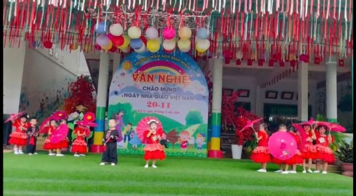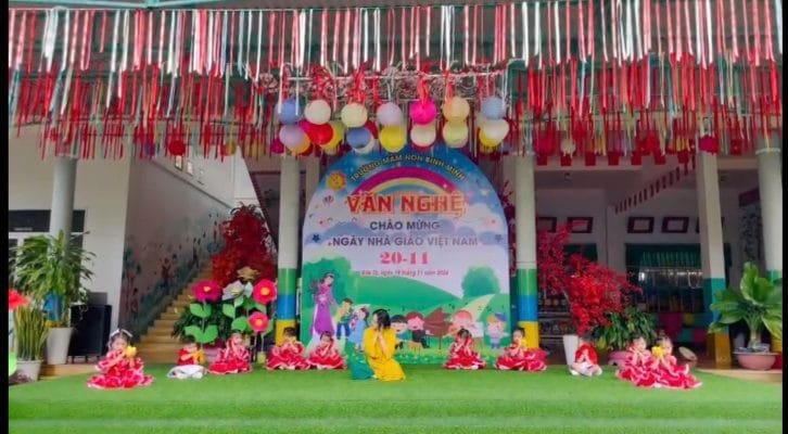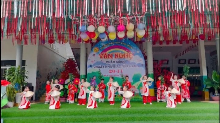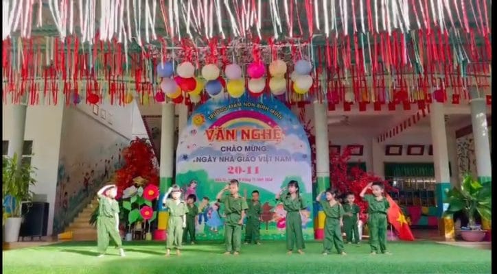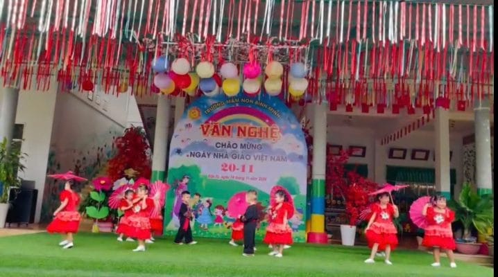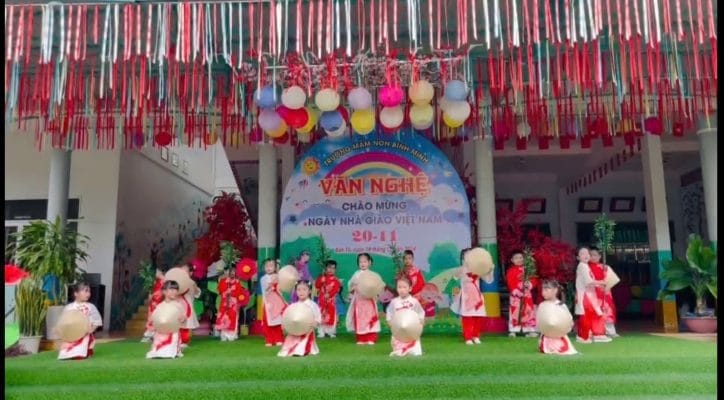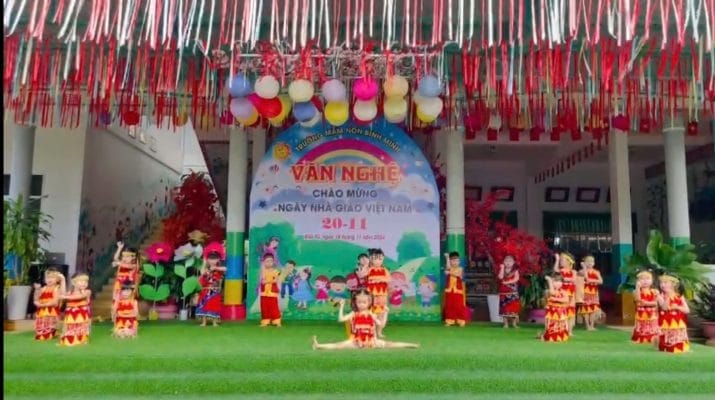 Ngày 19/11/2024, Trường Mầm non Bình Minh tổ chức hội diễn văn nghệ chào mừng 42 năm ngày Nhà giáo Việt Nam 20/11/2024. Trong hội diễn gồm có 9 tiết mục, mỗi tiết mục có một nội dung, bản sắc, nghệ thuật khác nhau. Thông qua mỗi tiết mục nhằm giúp cho trẻ biết yêu quê hương, Đất nước, Yêu hoà bình, Biết ơn những thế hệ đi trước, cô giáo, cha mẹ, từ đó mỗi trẻ tích luỹ cho bản thân kỹ năng sống, phẩm chất đạo đức và luôn phát huy tính tích cực, năng động, sáng tạo, hợp tác, đoàn kết, chia sẻ trong mọi hoạt động khi ở trường.