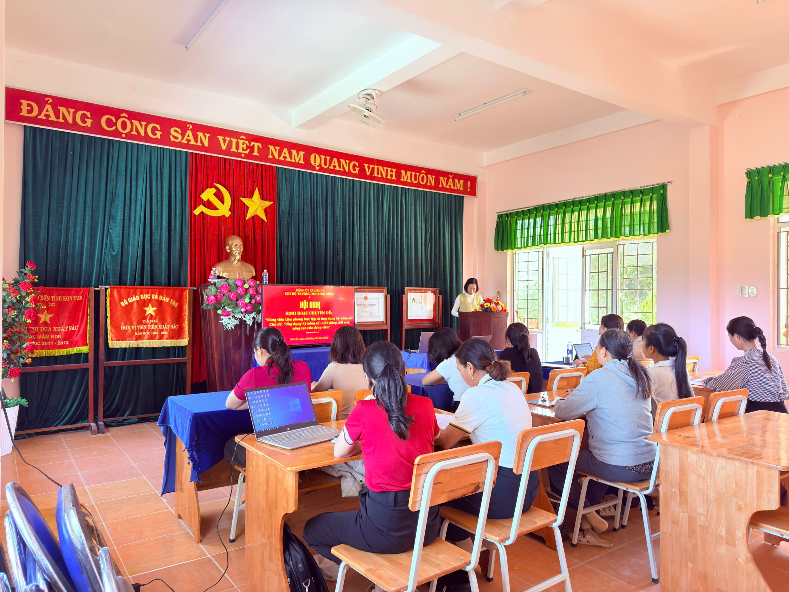 📅 Ngày 10/02/2026, Chi bộ Trường Mầm non Bình Minh đã tổ chức buổi sinh hoạt chuyên đề với chủ đề “Đảng viên tiên phong học tập kỹ năng số” 💻📱. Đây là hoạt động thiết thực nhằm triển khai Nghị quyết về Chuyển đổi số, góp phần nâng cao năng lực thực tiễn cho đội ngũ cán bộ, đảng viên trong giai đoạn hiện nay.