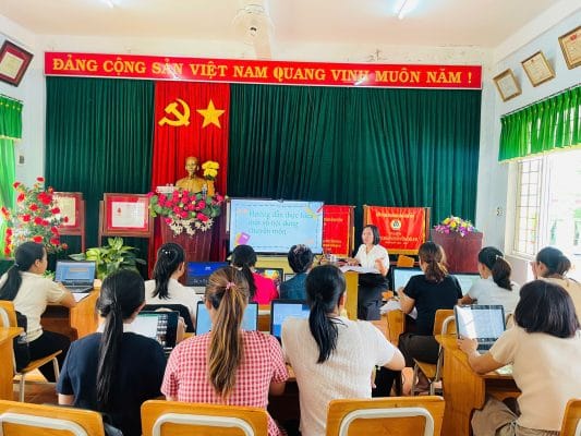Thực hiện kế hoạch giáo dục nhà trường và kế hoạch bồi dưỡng thường xuyên năm học 2025-2026. Hôm nay, ngày 28/8/2025, tập thể CBQL, giáo viên trường Mầm non Bình Minh đã tham gia bồi dưỡng chuyên môn với tinh thần nghiêm túc, trách nhiệm và nhiệt huyết. Đây là dịp để mỗi giáo viên cập nhật kiến thức, nâng cao kỹ năng sư phạm, chia sẻ kinh nghiệm, từ đó áp dụng hiệu quả vào thực tiễn giảng dạy. Các hoạt động bồi dưỡng chuyên môn không chỉ giúp nâng cao chất lượng đội ngũ, nâng cao chất lượng chăm sóc, giáo dục trẻ mà còn góp phần xây dựng tập thể sư phạm đoàn kết, sáng tạo, luôn đổi mới để mang đến môi trường học tập thân thiện, hạnh phúc cho các bé.