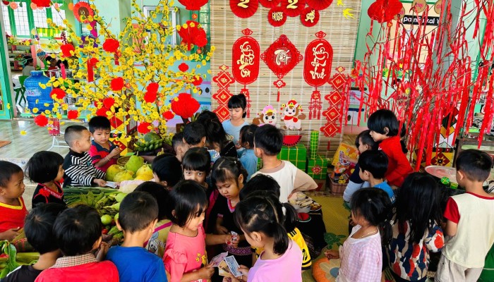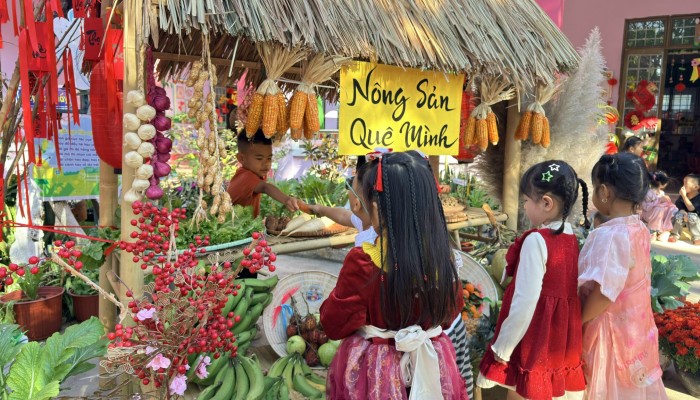 Thông qua việc khám phá các gian hàng, trẻ được làm quen với những sản phẩm ngày Tết, rèn kỹ năng giao tiếp, mạnh dạn trao đổi, lựa chọn và trải nghiệm trong không khí nhộn nhịp, ấm áp. Hoạt động không chỉ mang đến niềm vui, sự hào hứng mà còn góp phần giúp trẻ hiểu hơn về ý nghĩa của Tết cổ truyền, nuôi dưỡng tình yêu văn hóa dân tộc ngay từ những năm đầu đời.