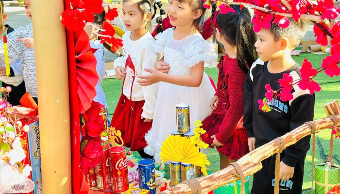Tiếp nối chuỗi sự kiện Tết và Mùa xuân, các bé đã có một ngày trải nghiệm thật vui tươi khi tham quan các gian hàng Tết rực rỡ sắc xuân tại nhà trường. Mỗi gian hàng là một không gian quen thuộc của ngày Tết cổ truyền, nơi trẻ được quan sát, tìm hiểu và trực tiếp tham gia vào các hoạt động trải nghiệm phù hợp với lứa tuổi.