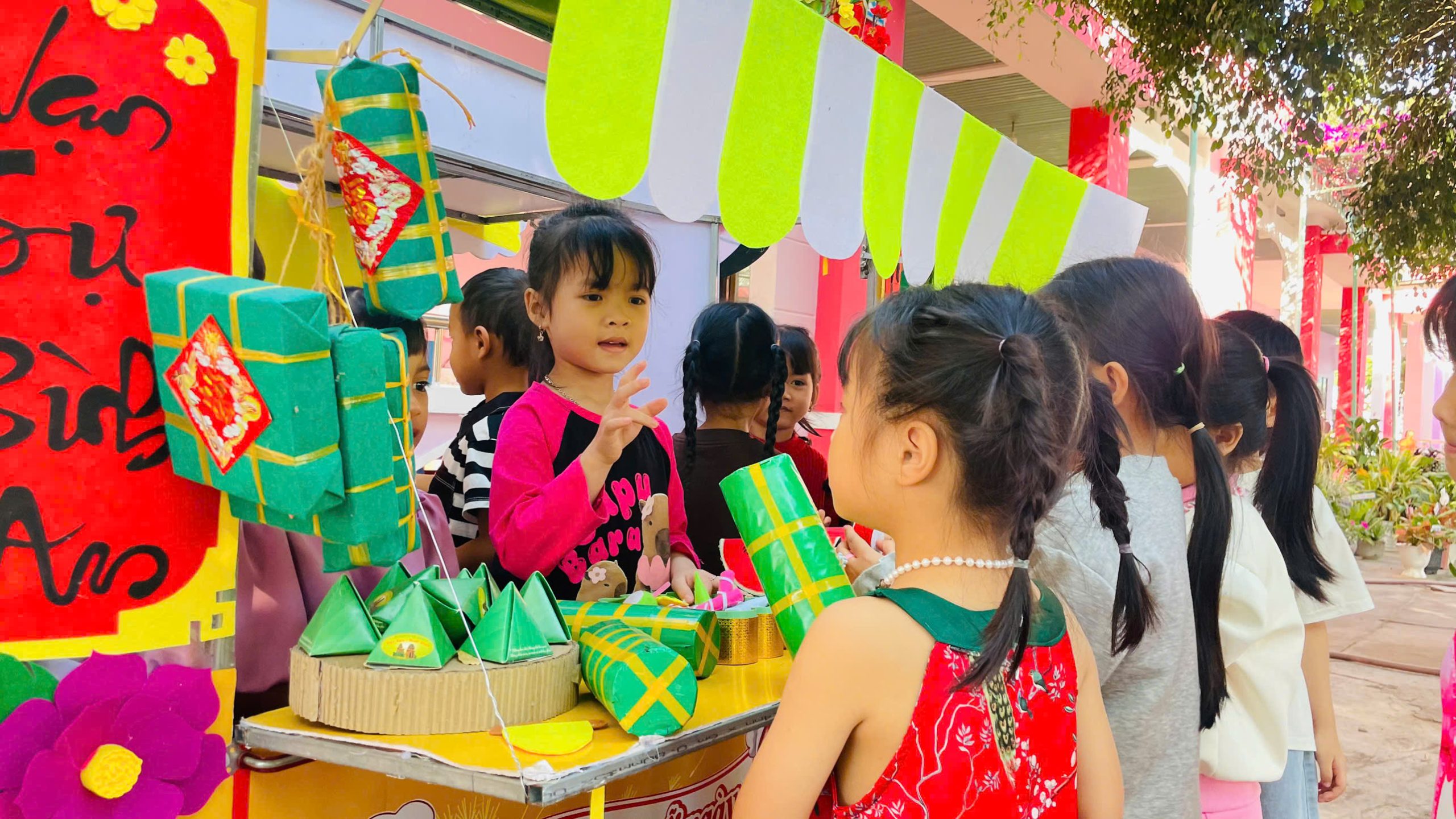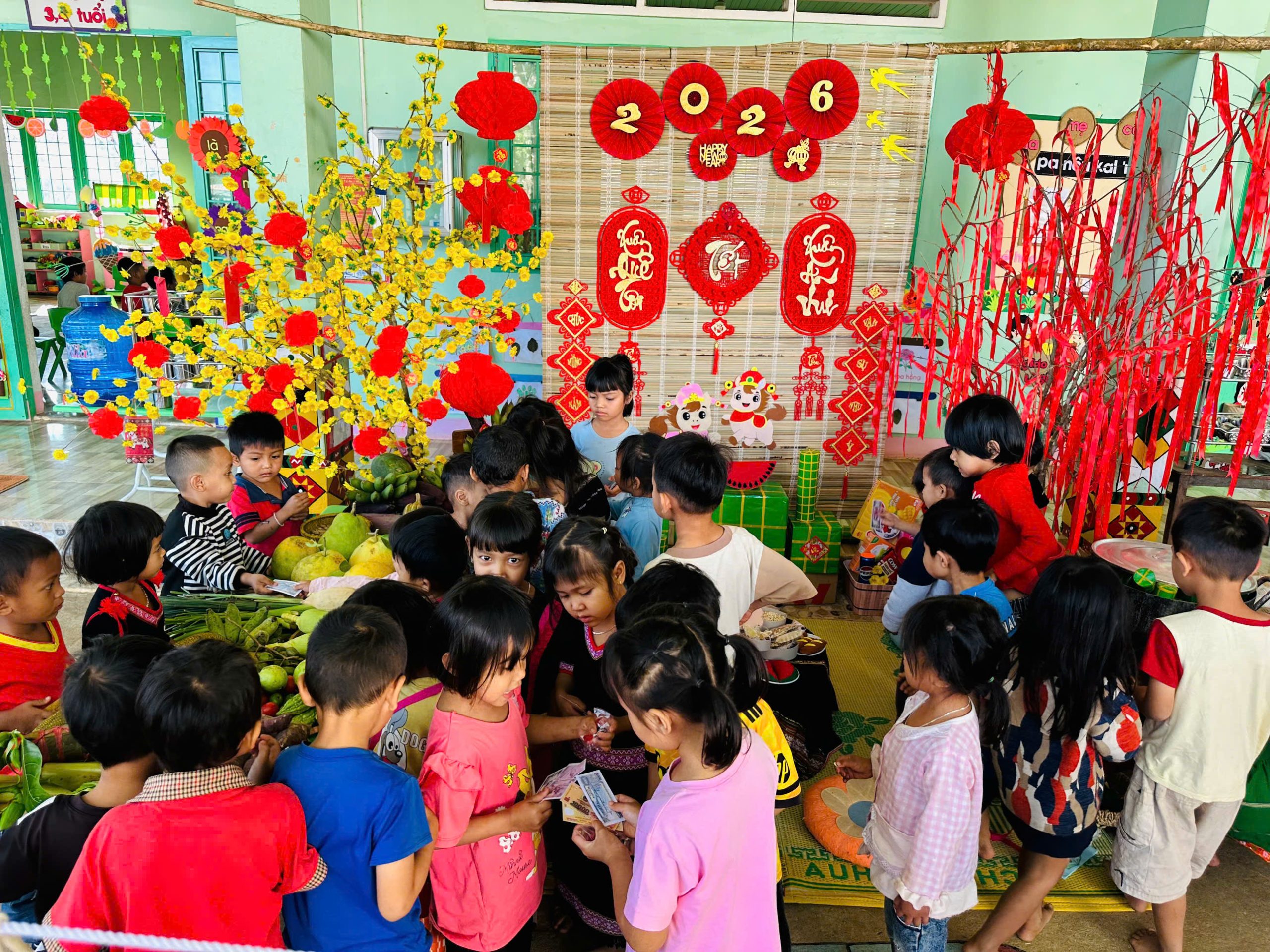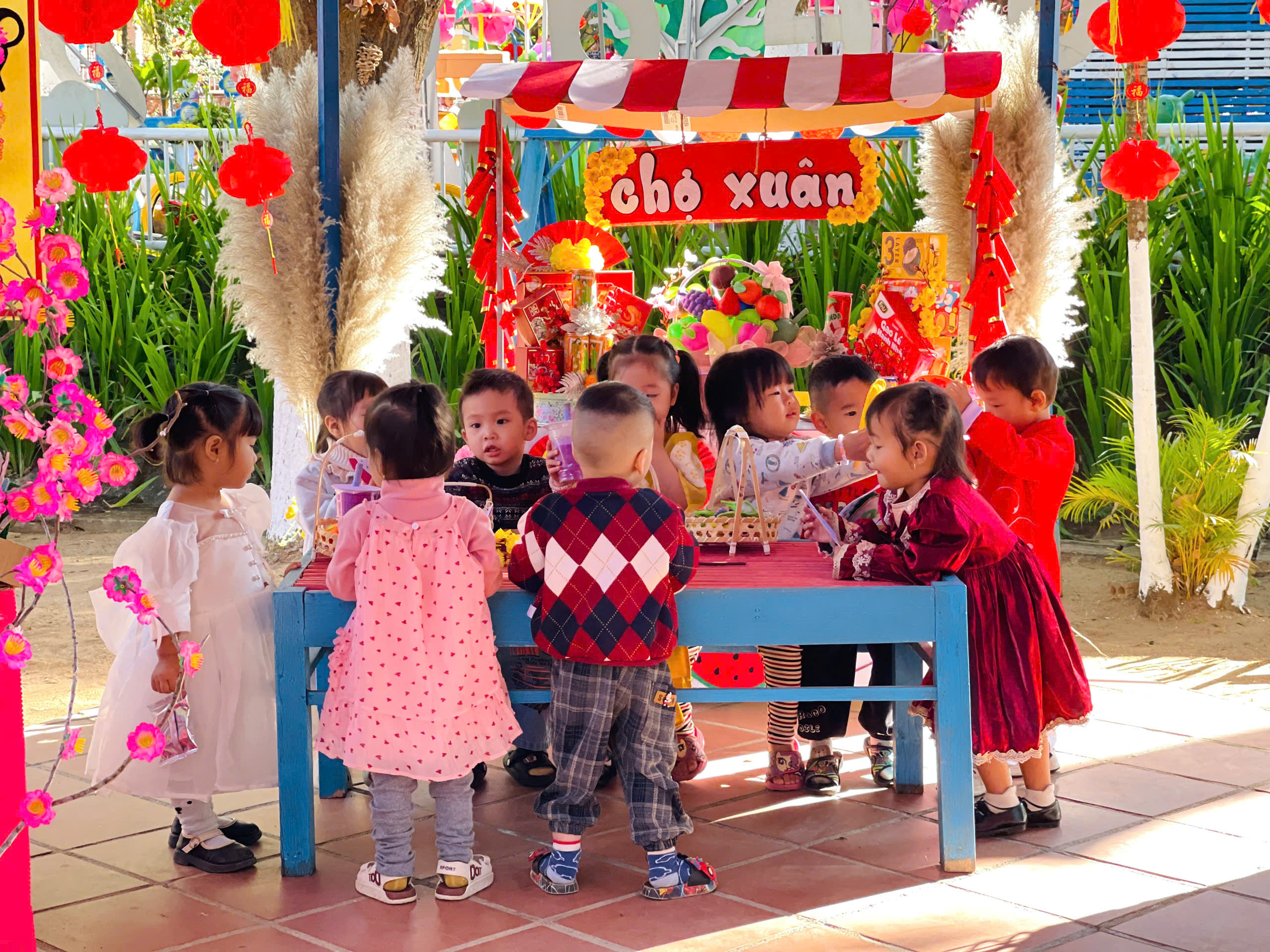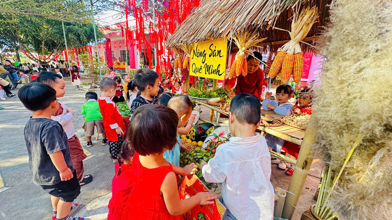 Thông qua việc khám phá các gian hàng, trẻ được làm quen với những sản phẩm ngày Tết, rèn kỹ năng giao tiếp, mạnh dạn trao đổi, lựa chọn và trải nghiệm trong không khí nhộn nhịp, ấm áp. Hoạt động không chỉ mang đến niềm vui, sự hào hứng mà còn góp phần giúp trẻ hiểu hơn về ý nghĩa của Tết cổ truyền, nuôi dưỡng tình yêu văn hóa dân tộc ngay từ những năm đầu đời.