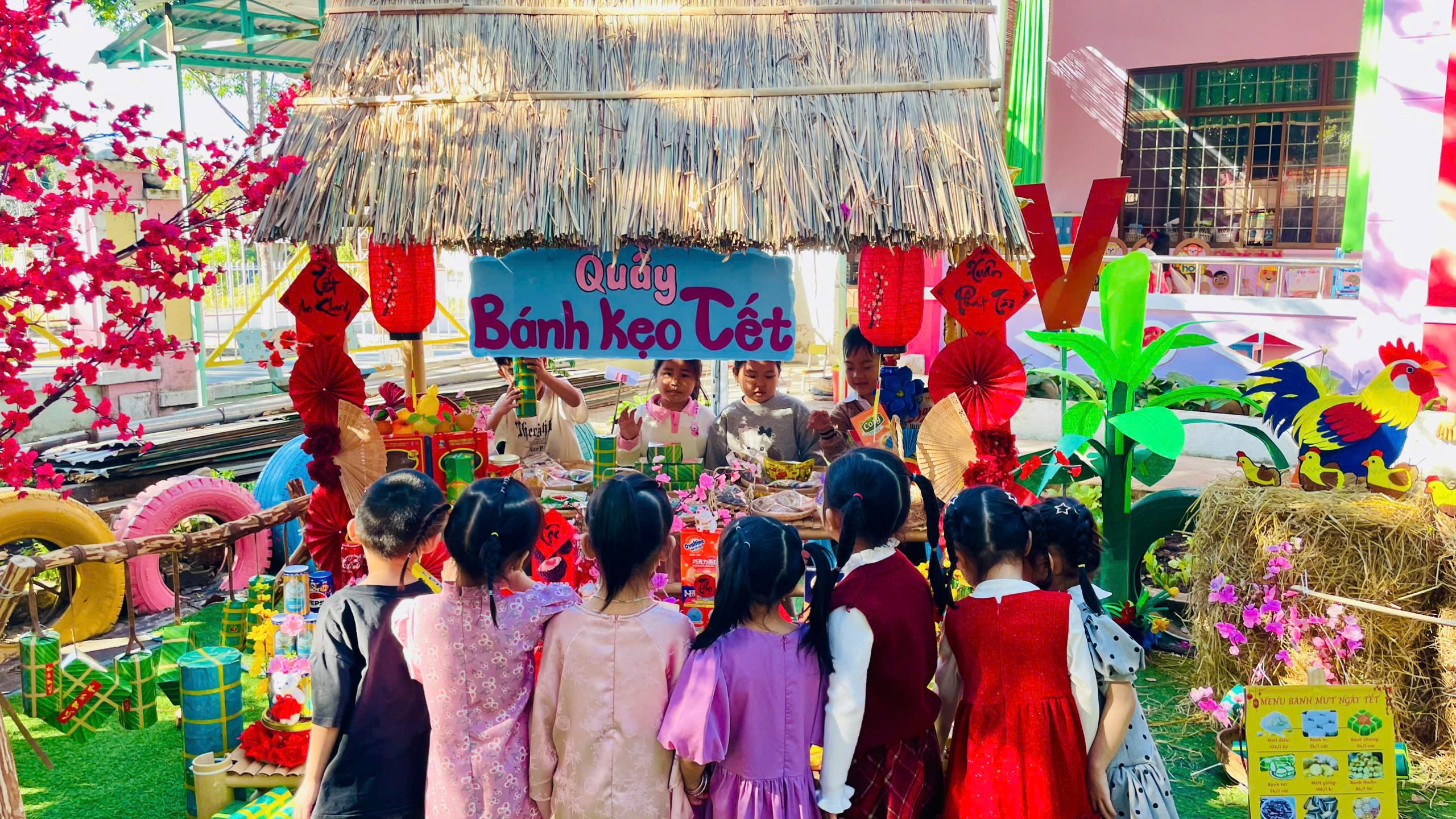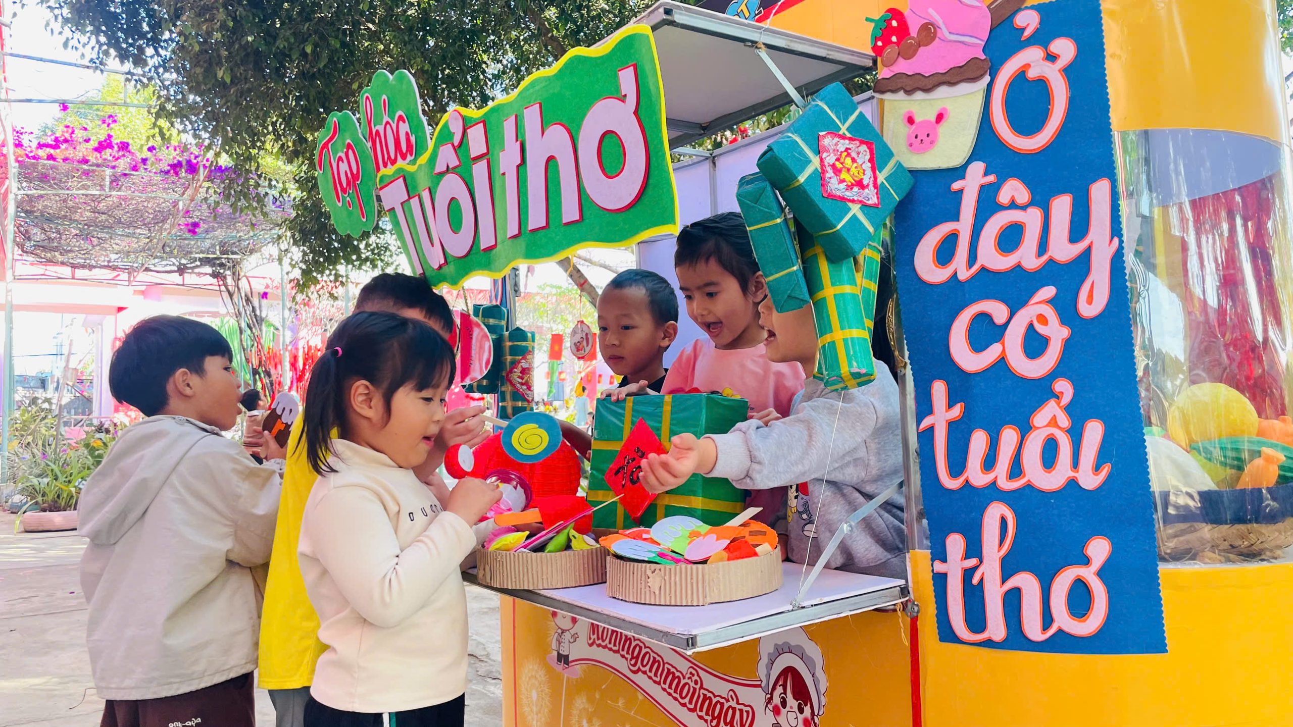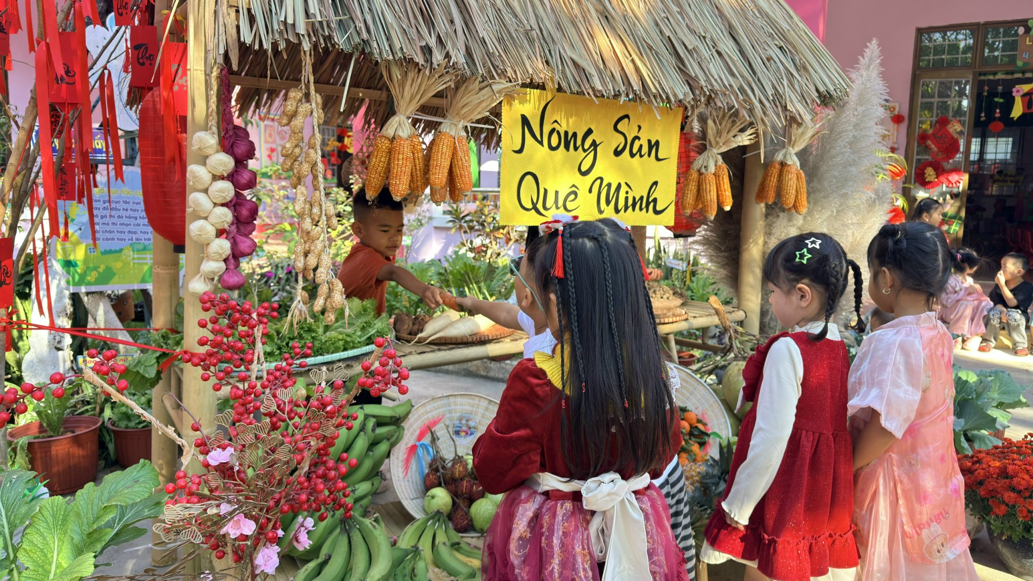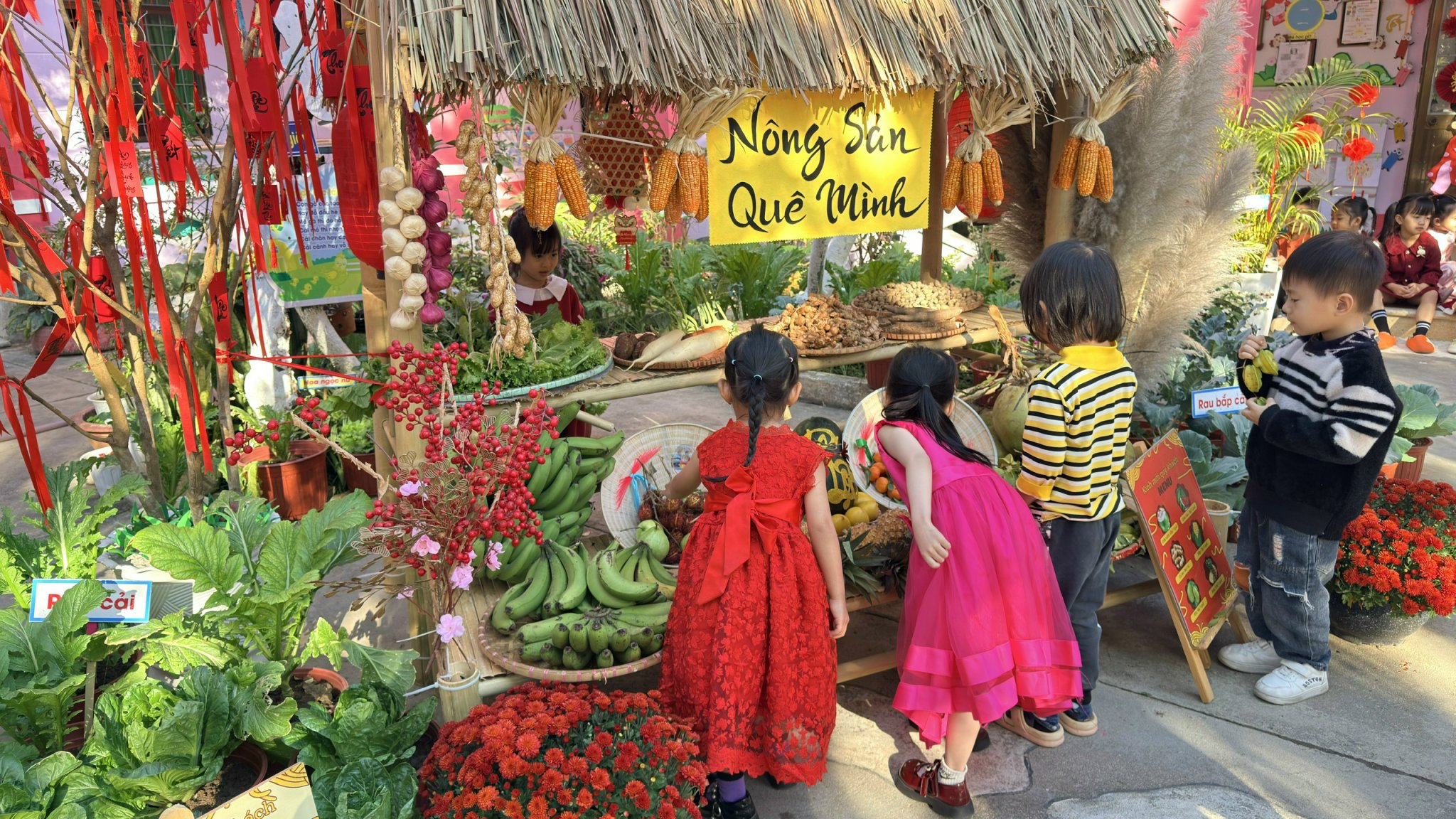 Thông qua việc khám phá các gian hàng, trẻ được làm quen với những sản phẩm ngày Tết, rèn kỹ năng giao tiếp, mạnh dạn trao đổi, lựa chọn và trải nghiệm trong không khí nhộn nhịp, ấm áp. Hoạt động không chỉ mang đến niềm vui, sự hào hứng mà còn góp phần giúp trẻ hiểu hơn về ý nghĩa của Tết cổ truyền, nuôi dưỡng tình yêu văn hóa dân tộc ngay từ những năm đầu đời.