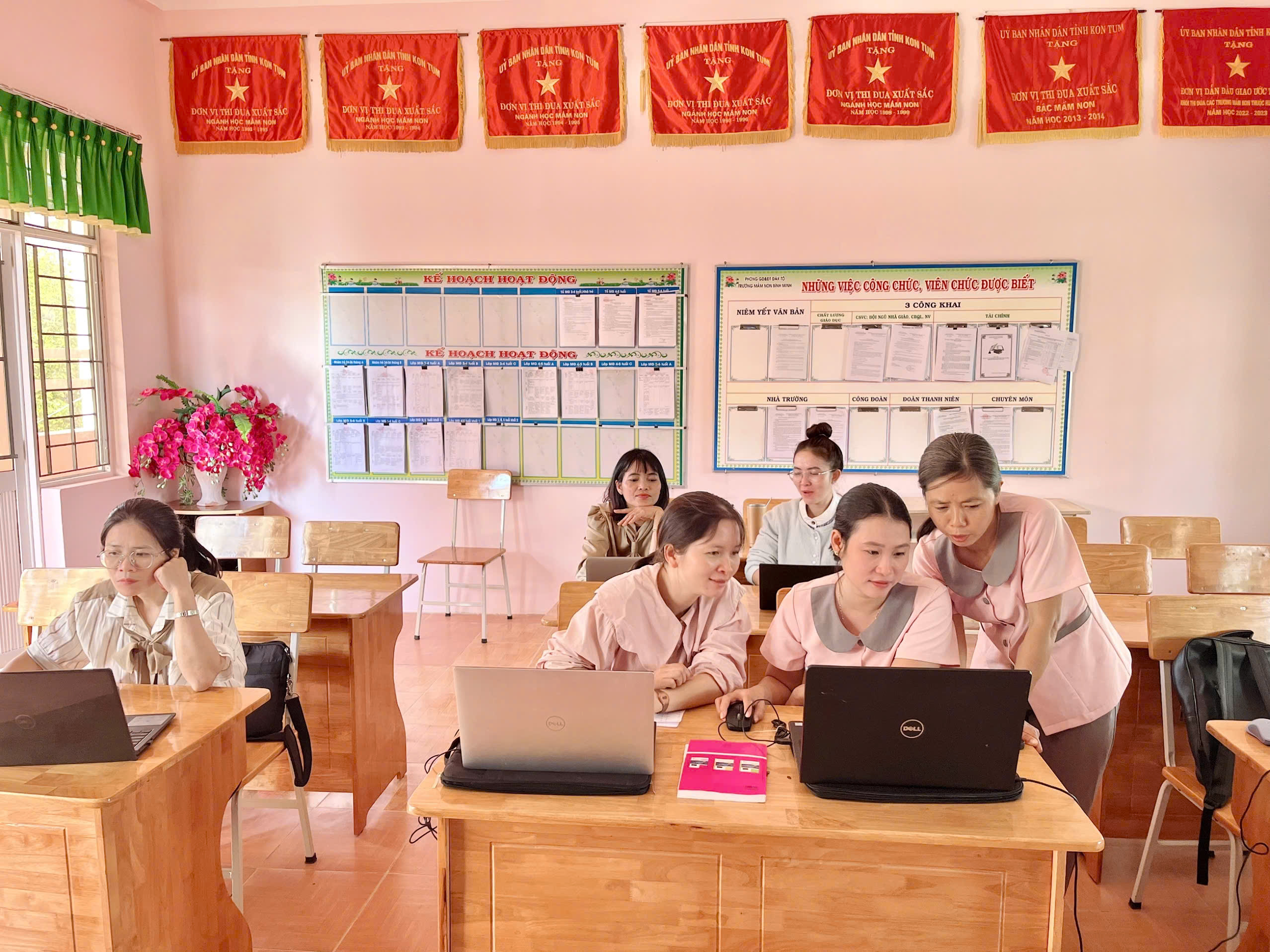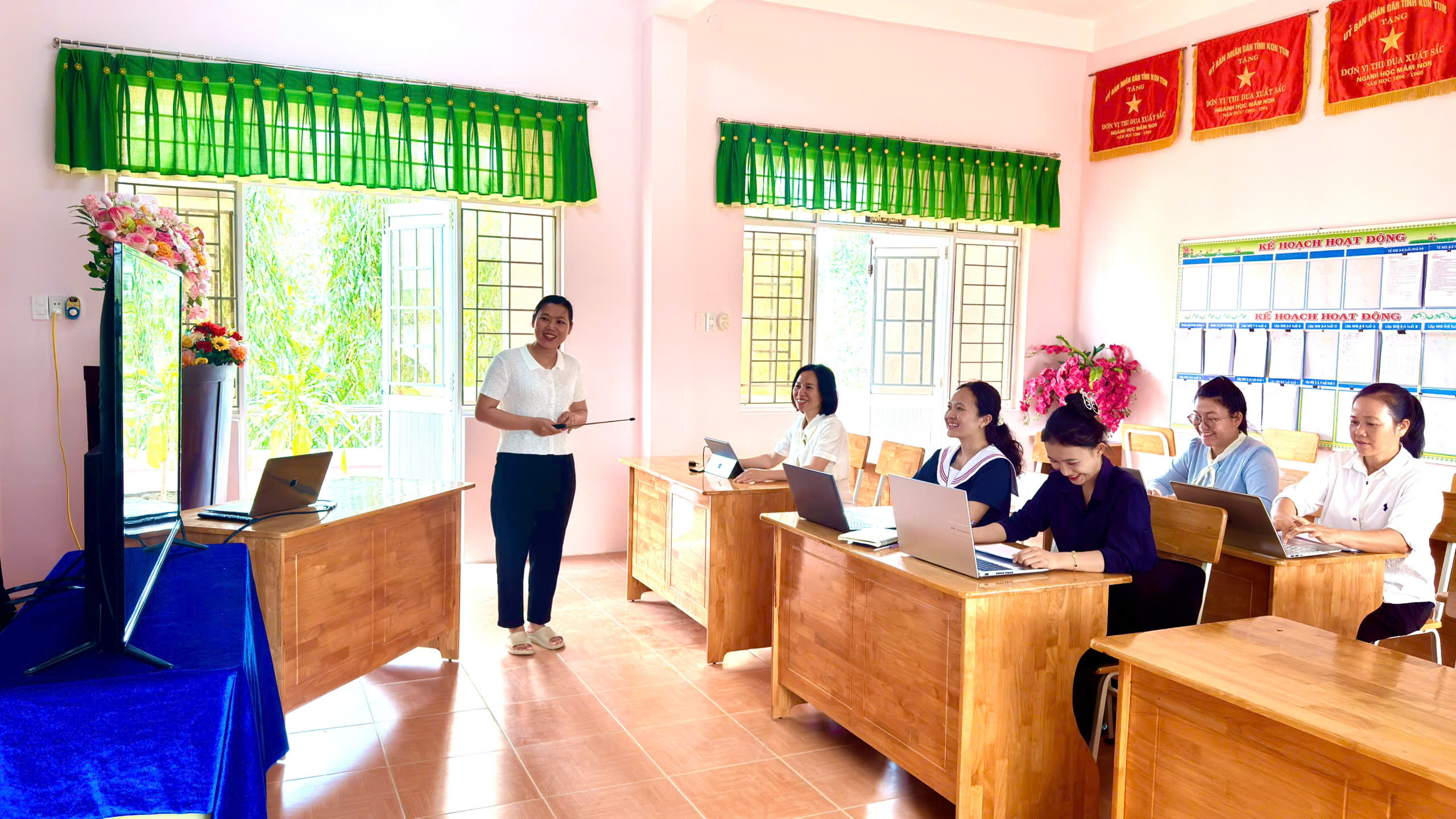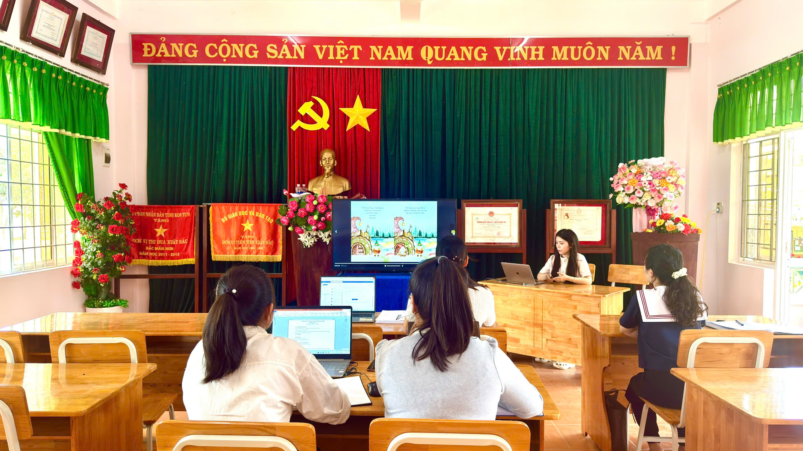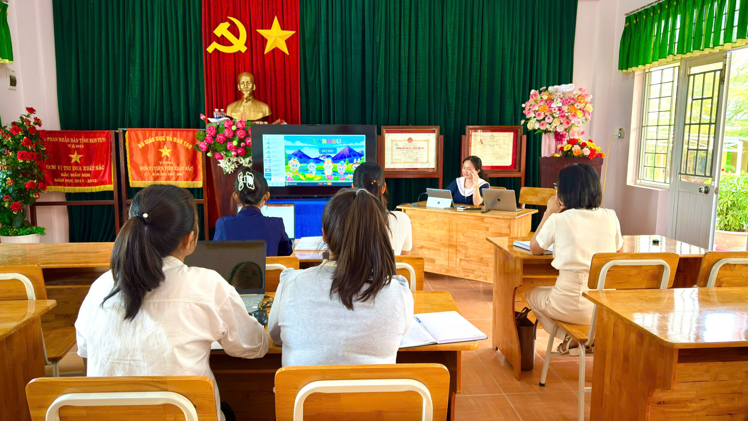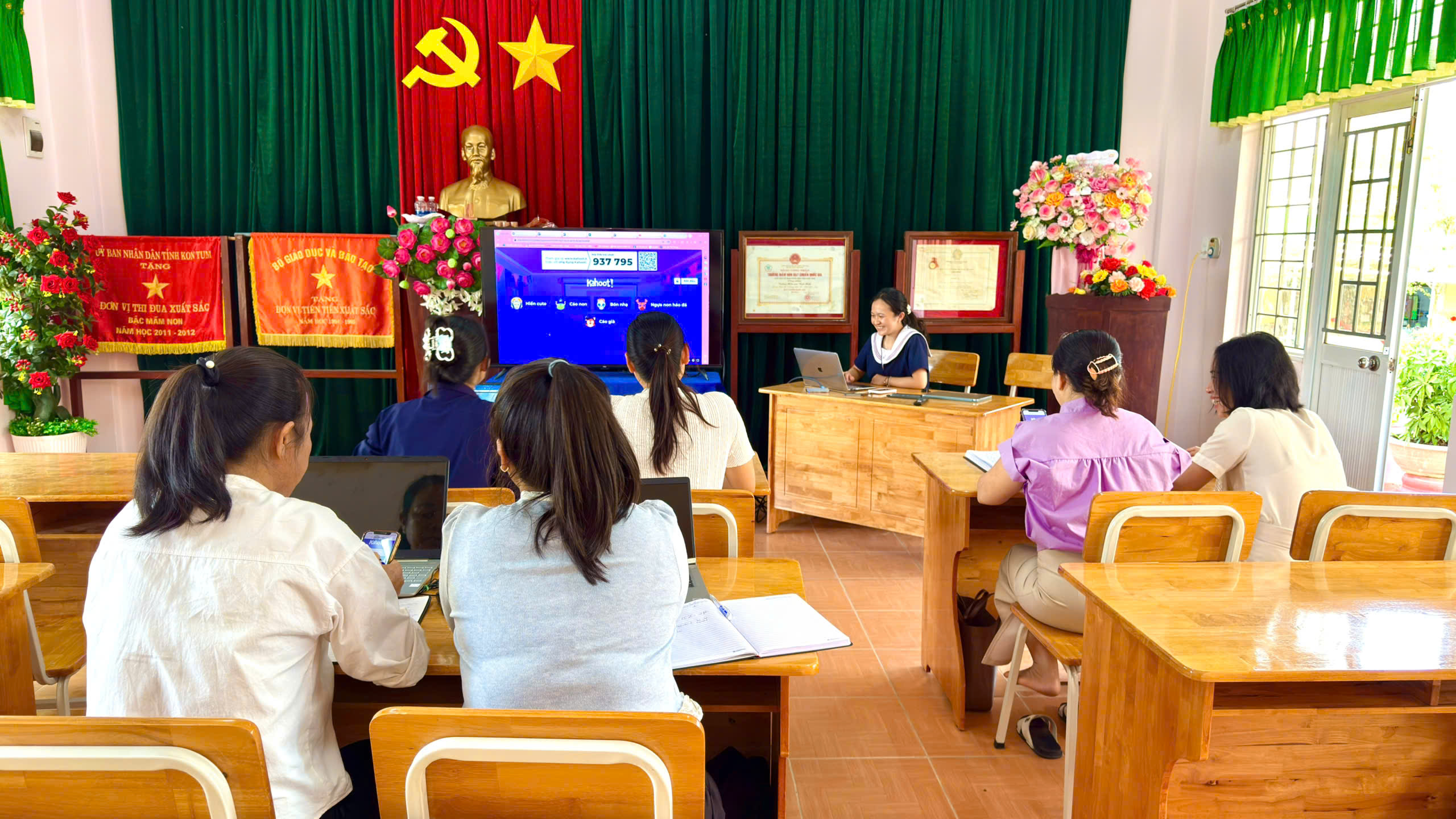 Tháng 2, ba tổ chuyên môn của trường đã tổ chức sinh hoạt với chủ đề “Ứng dụng kỹ năng số”, tập trung hướng dẫn giáo viên khai thác hiệu quả các phần mềm phục vụ công tác soạn giảng và tổ chức hoạt động cho trẻ.