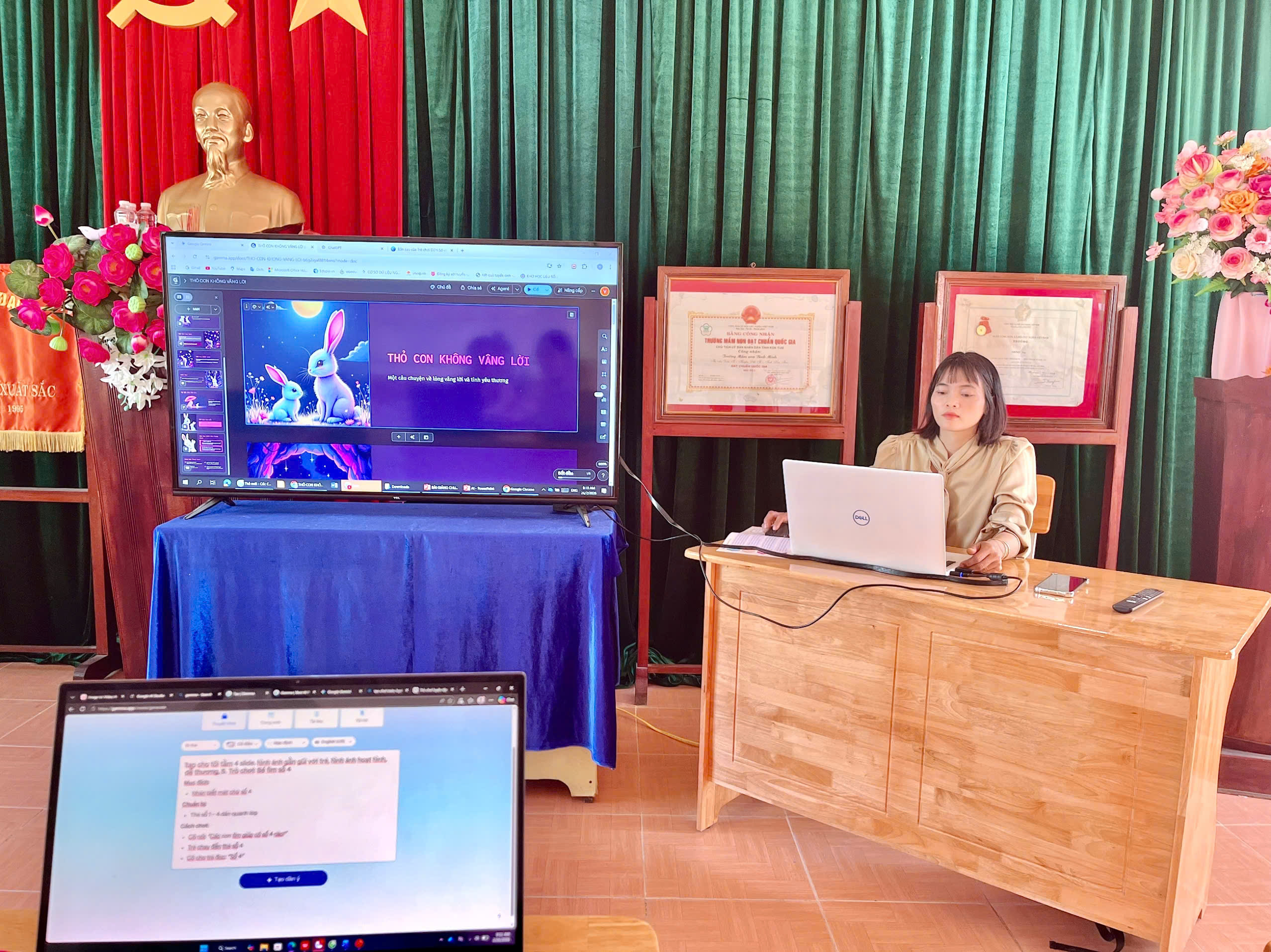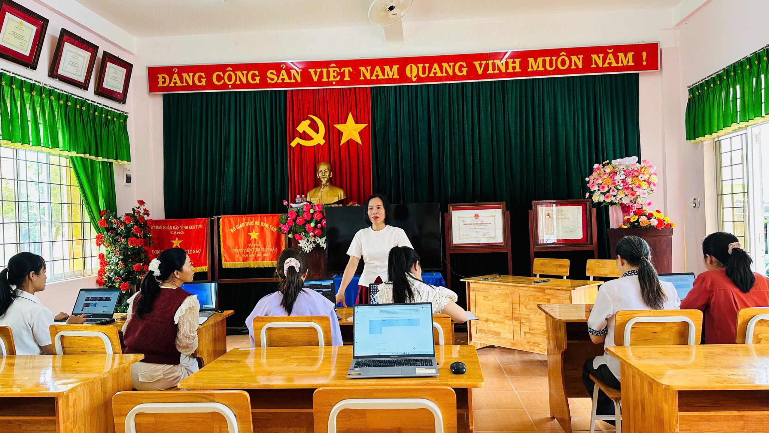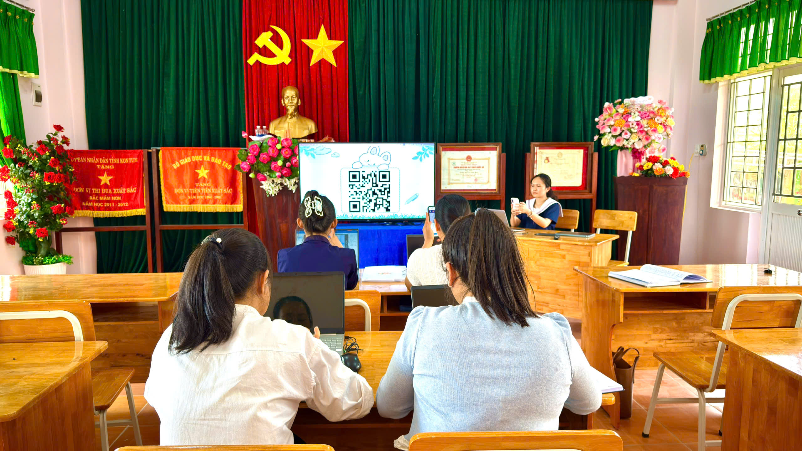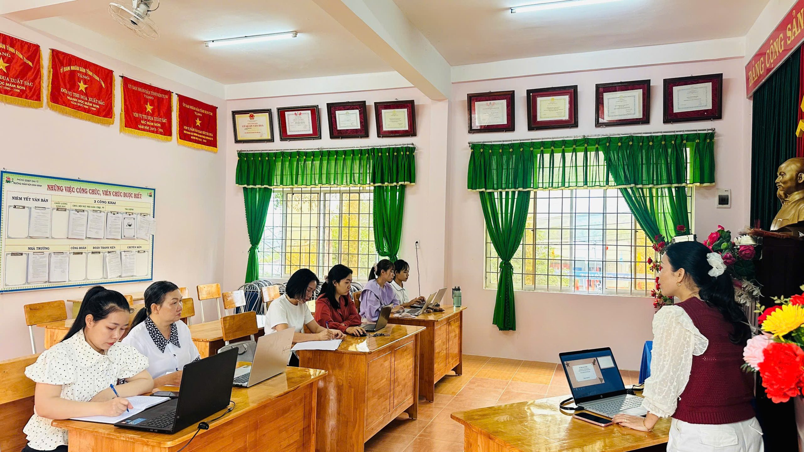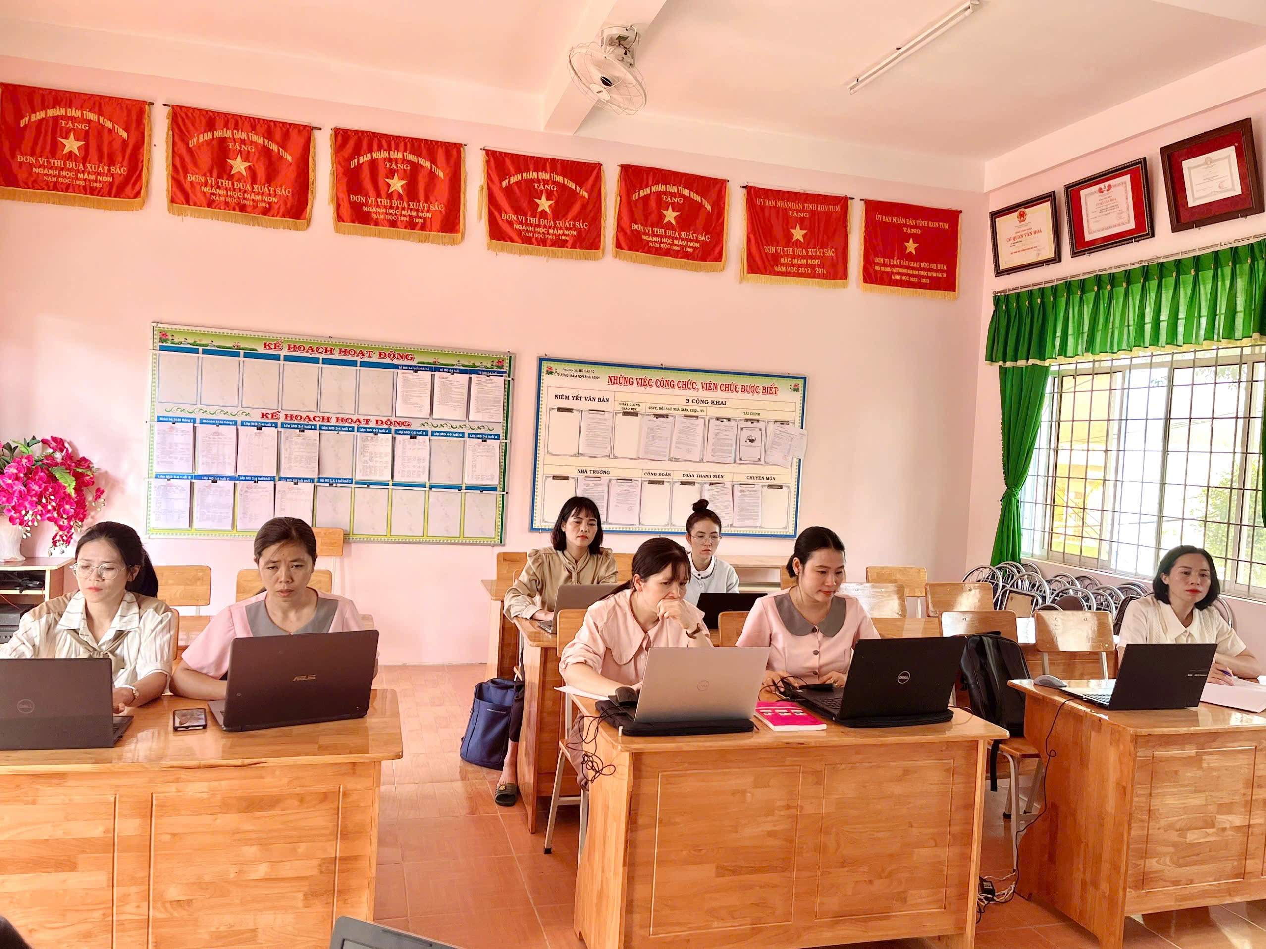 Tháng 2, ba tổ chuyên môn của trường đã tổ chức sinh hoạt với chủ đề “Ứng dụng kỹ năng số”, tập trung hướng dẫn giáo viên khai thác hiệu quả các phần mềm phục vụ công tác soạn giảng và tổ chức hoạt động cho trẻ.