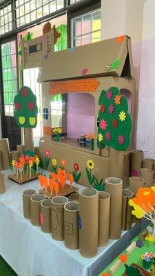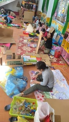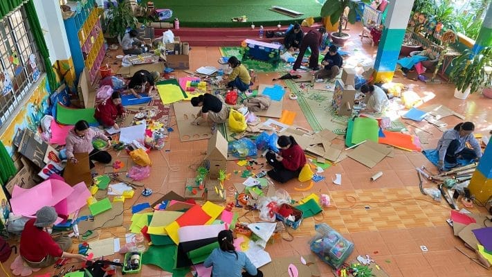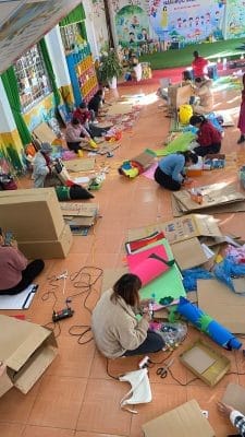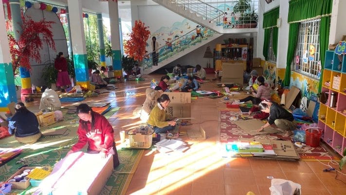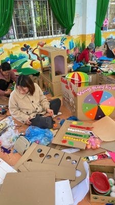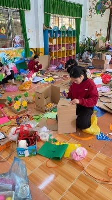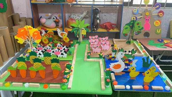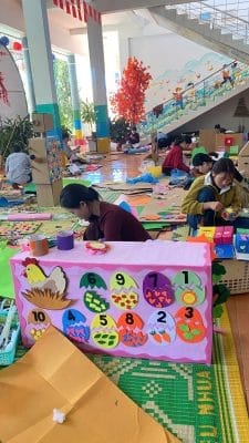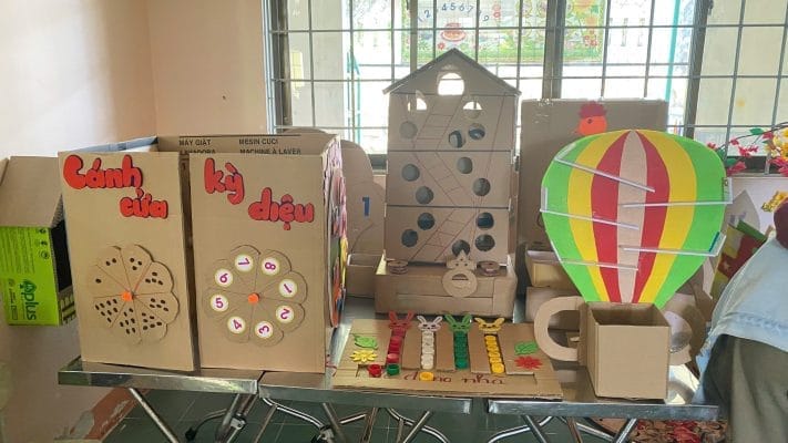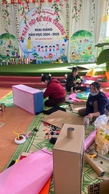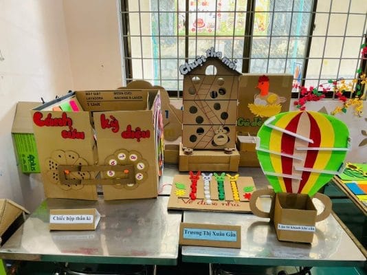 Sáng ngày 30/11/2024. Trường Mầm non Bình Minh tổ chức hội thi làm đồ dùng, đồ chơi tự tạo, bằng những nguyên vât liệu tận dụng, thiên nhiên và phế thải để làm đồ dùng, đồ chơi cho trẻ hoạt động là một việc làm rất có ý nghĩa, vừa tiết kiệm được tiền mua sắm nguyên vật liệu, tạo ra những đồ dùng, đồ chơi mang tính sáng tạo, phong phú vừa làm tăng số lượng đồ dùng, đồ chơi cho trẻ, mà hiệu quả sử dụng lại cao đồng thời góp phần làm giảm thiểu lượng rác thải, giảm chi phí cho công tác vệ sinh môi trường. Sự đa dạng của nguyên vật liệu thiên nhiên đã thu hút được sự chú ý của trẻ mang lại cho trẻ niềm say mê hứng thú. Chính những vật liệu đơn giản sẵn có trong cuộc sống hàng ngày là những đồ chơi có giá trị giúp trẻ phát triển toàn diện. Bởi vì đồ chơi tự tạo có ưu điểm nổi bật là sẵn có, thường xuyên đổi mới, phong phú và đặc biệt sáng tạo. Sau hơn bốn giờ đồng hồ các cô đã cho ra lò hàng trăm sản phẩm mang giá trị cao mà ít tốn kém. Giúp cho trẻ có nhiều cơ hội khám phá, giáo viên có nhiều lựa chọn phương tiện trong công tác chăm sóc giáo dục trẻ.