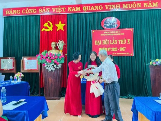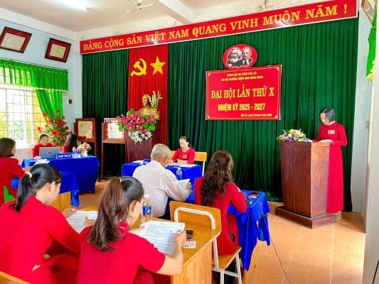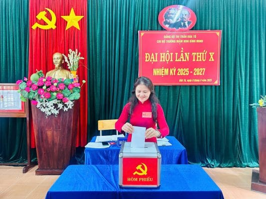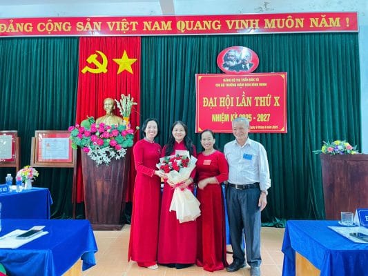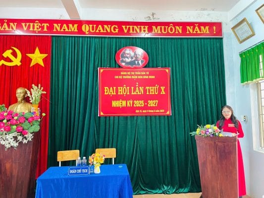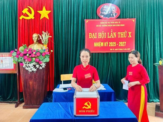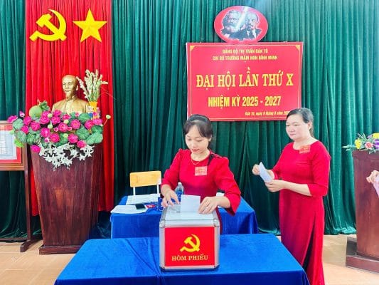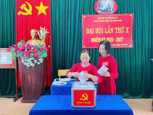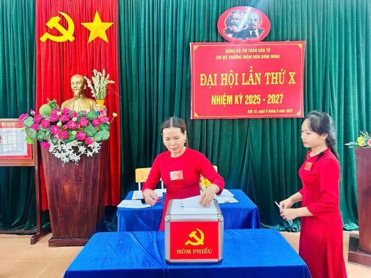 Ngày 09/6/2025, Trường Mầm non Bình Minh tổ chức Đại hội Chi bộ khóa X, Nhiệm kỳ 2025–2027 thành công tốt đẹp. Với tinh thần làm việc nghiêm túc, dân chủ, trách nhiệm, Đại hội đã tổng kết, đánh giá toàn diện kết quả thực hiện Nghị quyết nhiệm kỳ 2022-2025, đồng thời đề ra mục tiêu, nhiệm vụ và giải pháp trọng tâm giai đoạn 2025-2027. Với tinh thần đoàn kết, trí tuệ và đổi mới, Đại hội đã bầu Chi ủy chi bộ, khóa X gồm 03 đồng chí tiêu biểu về phẩm chất chính trị, năng lực lãnh đạo và tinh thần trách nhiệm cao, bầu đồng chí Nguyễn Thị Tầm là Bí thư Chi bộ.
