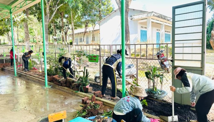🌺🌺Công tác chuẩn bị đón năm học mới 2024-2025. Ngày 7/8/2024, giáo viên tại điểm trường khối 1, huy động phụ huynh lao động dọn vệ sinh, trồng hoa và tạo môi trường trong và ngoài lớp học.