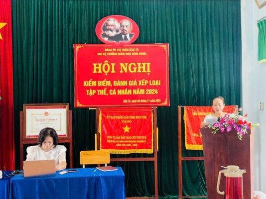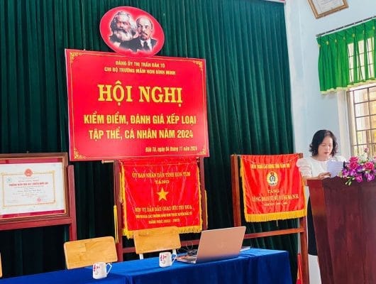 Sáng ngày mùng 04 tháng 11 năm 2024. Chi bộ Trường Mầm non Bình Minh tổ chức Hội nghị kiểm điểm, đánh giá tổ chức cơ sở đảng, đảng viên năm 2024. Về dự Hội nghị có đồng chí Lê Quang Chiến ĐUV, phó chủ tịch hội đồng nhân dân thị trấn về dự và chỉ đạo. Kiểm điểm tự phê bình và phê bình, đánh giá chất lượng tổ chức đảng và cán bộ, đảng viên cuối năm là nội dung quan trọng nhằm góp phần nâng cao năng lực lãnh đạo, sức chiến đấu của tổ chức đảng và chất lượng đội ngũ đảng viên. Thông qua công tác đánh giá nhằm giúp cho cán bộ và từng cá nhân tự soi, tự sửa, từ đó đề ra những giải pháp phát huy ưu điểm, khắc phục khuyết điểm trong lãnh đạo, quản lý và thực hiện nhiệm vụ được giao trong thời gian tới đạt hiệu quả cao hơn.