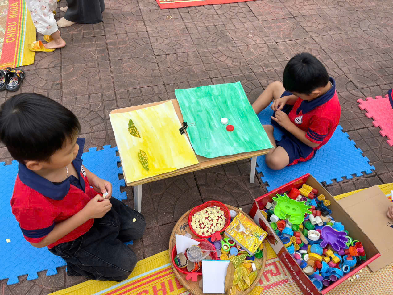 Không khí ngày hội thật vui tươi và rộn ràng! Bé nào cũng say mê, chăm chú, thể hiện sự khéo léo và óc sáng tạo tuyệt vời qua từng sản phẩm nhỏ xinh.