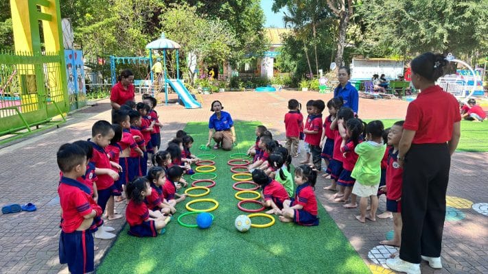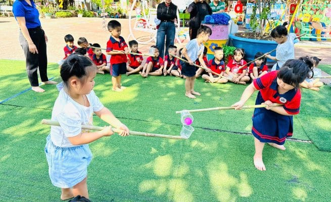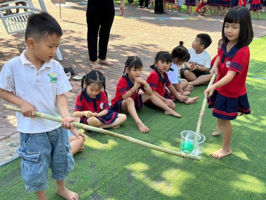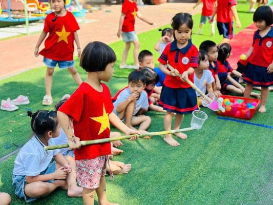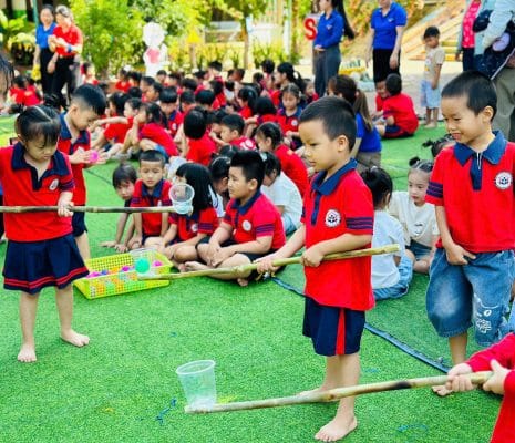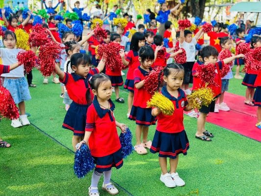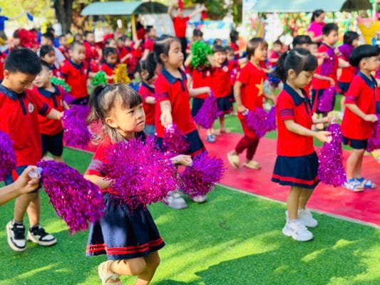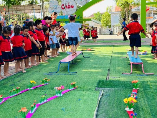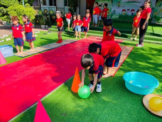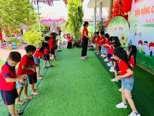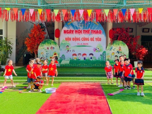 Ngày hội thể thao của các bé góp phần giúp trẻ nâng cao thể chất, phát triển tố chất tự tin, nhanh nhẹn và các kỹ năng phối hợp hoạt động nhóm.